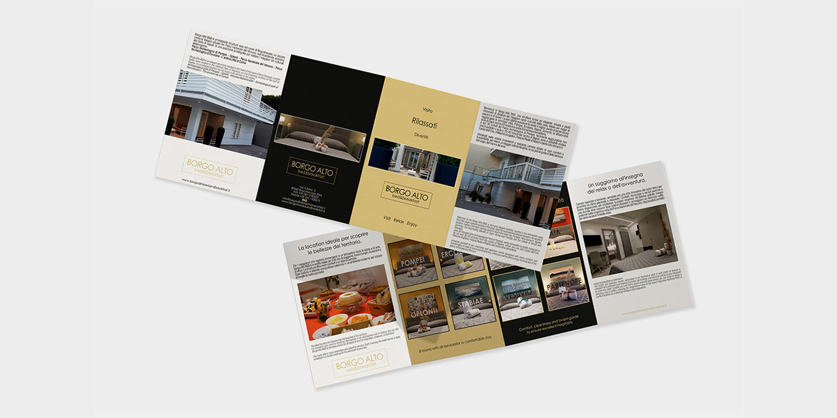 Borgo Alto B&B è una struttura elegante situata nel cuore di Boscotrecase, nel suggestivo contesto del Parco Nazionale del Vesuvio, con una vista privilegiata sul Golfo di Napoli. Una posizione strategica che rende la struttura il punto di partenza ideale per visitare i principali siti culturali e turistici della regione. Abbiamo affiancato il cliente fin dalle fasi precedenti all’apertura, accompagnandolo passo dopo passo nella costruzione dell’identità e della comunicazione del brand. Ci siamo occupati della realizzazione di shooting fotografici professionali per la promozione della struttura e della gestione dei profili social, contribuendo a definire uno stile coerente e riconoscibile. Un progetto che ha integrato graphic design, social media marketing e copywriting, sviluppato in stretta collaborazione con il cliente.